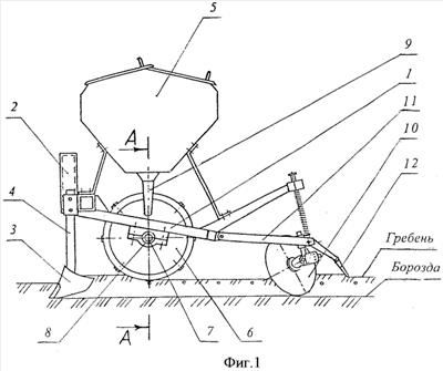 Недостатками указанного устройства являются сложность конструкции, обусловленная необходимостью использования дополнительных чистика и прикатывающего катка. Кроме того, использование этого технического решения для возделывания сельскохозяйственных культур на гребнях может вызвать сильное иссушение почвы гребня в засушливый период вследствие прикатанной поверхности. Прикатывание катком засеянного гребня без последующего рыхления почвы образует поверхностную корку, что не обеспечивает дружных всходов, а также нормальное развитие семян из-за угнетения растений и приводит к частичной гибели их.