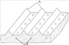 Указанная задача решается тем, что осенью производят вспашку участка и формирование резервно-опорных гребней 1 (см. чертеж), при этом ось гребней ориентирована на восход солнца в период появления всходов, т.е. конец апреля. В зимний период резервно-опорные гребни выполняют снегозадержание. Весной, после схода снега, в первых числах апреля производят раскладку клубней яровизированного картофеля раннеспелого сорта между резервно-опорными гребнями и засыпают их небольшим слоем земли (5-6 см), частично взятой из основания резервно-опорных гребней 2 (см. чертеж). Затем участок укрывают поверх резервно-опорных гребней прозрачной, натянутой пленкой, при этом средний опорный гребень должен быть несколько выше, после чего образуются две наклонные плоскости для стока дождевой воды и по периметру прикапывают землей из соседнего гребня. Так образуется замкнутое пространство между гребнями высотой 30-50 см в котором происходит ускоренный прогрев почвы, прорастание всходов и поддержание благоприятного микроклимата для развития растений. При этом суточное колебание температуры в корневой системе сводится к минимуму за счет аккумуляции тепла резервно-опорными гребнями в дневное время и его отдачи при ночных заморозках и за счет минимальной площади теплоотдачи защитного сооружения. Предлагаемое защитное сооружение самое эффективное, т.к. у него минимальная площадь теплоотдачи в сравнении с другими известными укрытиями, и существуют стабилизаторы температуры в виде гребней, а у известных укрытий этих преимуществ нет. (см. книгу «Полимерные пленки для выращивания и хранения плодов и овощей», под ред. С.В.Генеля, В.Е.Гуля, М., Химия, 1985, стр.53, 60-61). После достижения растениями необходимой высоты производят первое, а затем последующие окучивания путем перемещения части оснований резервно-опорных гребней к растениям. При окучивании необходимо использовать удлиненную мотыгу, которая позволит обрабатывать несколько рядов слевой и справой стороны за один проход в междурядье, чтобы не вытаптывать почву и сохранять рабочему вертикальное положение позвоночника. После того, как минует угроза ночных заморозков, пленку можно снять, чтобы не перегреть почву и преждевременно не вывести колорадского жука из спячки. После созревания картофеля производят сбор первого урожая (до 22 июня), при этом, выкапывая картофель, необходимо сохранять гребни, в которые следом высаживается семенной яровизированный картофель среднеспелых или позднеспелых сортов, который успеет дать второй урожай, но уже в летних условиях и без окучивания.