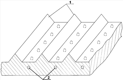 Изобретение поясняется чертежом: 1 – резервно-опорный гребень, 2 – картофельный ряд.