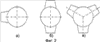 На фиг.1 представлено предлагаемое устройство с одним генератором пены и 3-мя насадками, на фиг.2а, б, в – примеры схем расположения узлов ввода на резервуаре, на фиг.3а, б, в, г – примеры схем расположения насадков на узле ввода и распределения огнетушащих веществ по секторам окружности резервуара.