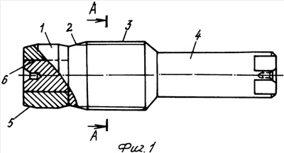 При обработке резьбы в детали с применением направляющей части 1 уменьшается биение метчика, обеспечивается соосность его вхождения в отверстие детали и повышается качество резьбы.