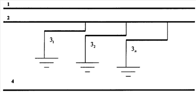 3 – дополнительный провод, разделенный на секции по условию минимума помехи в смежной линии связи;