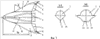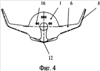 На гиперзвуковых скоростях полета (числа М 8) управление продольной и боковой дальностью осуществляют посредством отклонения преимущественно балансировочного кормового щитка 5, поскольку другие аэродинамические органы на этих скоростях полета либо мало эффективны (элевоны), либо неэффективны (рули направления).