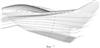 – третья область (III), автомодельная, соответствует минимальному тепловому потоку при   2. Характеризуется растеканием потока вдоль передней стреловидной кромки крыла и иллюстрируется линиями тока в поле течения по поверхности КА (фиг.5, 6). При этом касательная к линии тока в каждой точке совпадает с направлением вектора скорости в этой точке в данный момент времени.