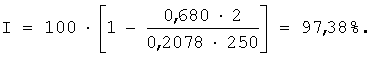 Далее 5 мл отрегенерированного экстрагента смешивают с 5 мл технического ТБФ, дополнительно очищенного вакуумной дистилляцией. Перемешивают и полученным раствором заполняют кварцевую кювету с толщиной поглощающего слоя 0,1 см и фотометрируют на спектрофотометре «Спекорд» М-40 в области длин волн 195÷250 нм. В качестве раствора сравнения используется технический ТБФ, дополнительно очищенный вакуумной дистилляцией, помещенный в кварцевую кювету с толщиной поглощающего слоя 0,1 см. Измеряют оптическую плотность поглощения при 198 нм, оптическая плотность при этом составляет 0,68. Коэффициент разбавления k2 равен