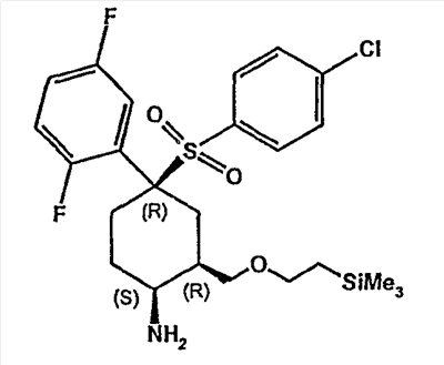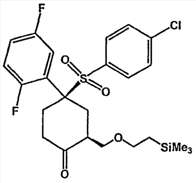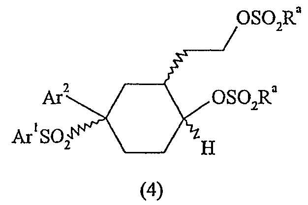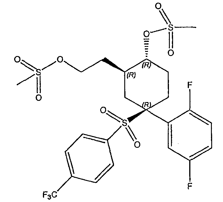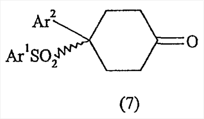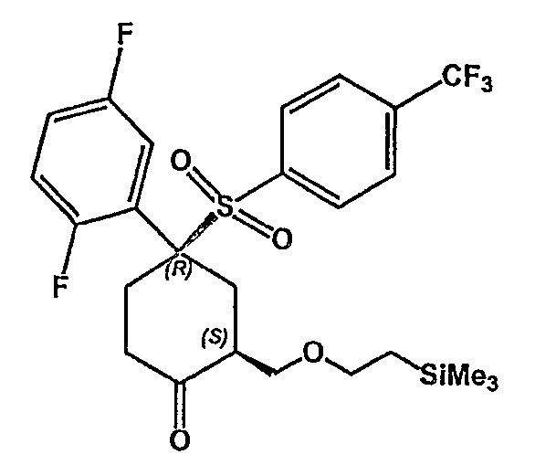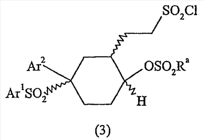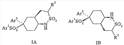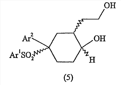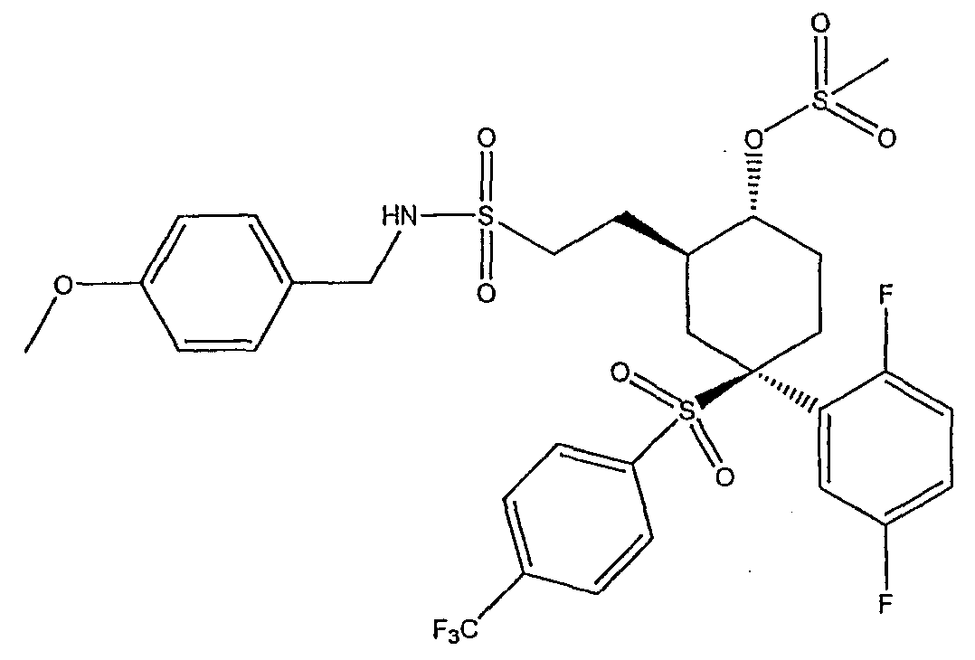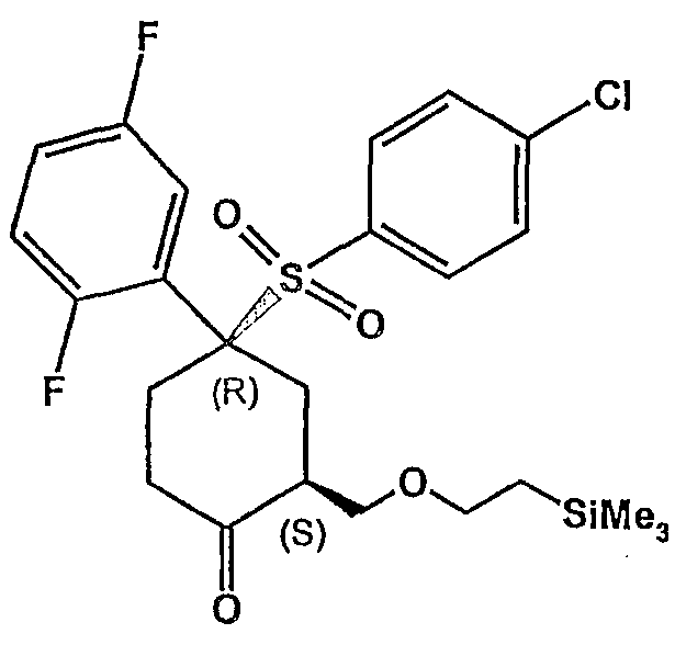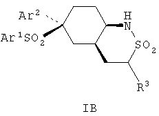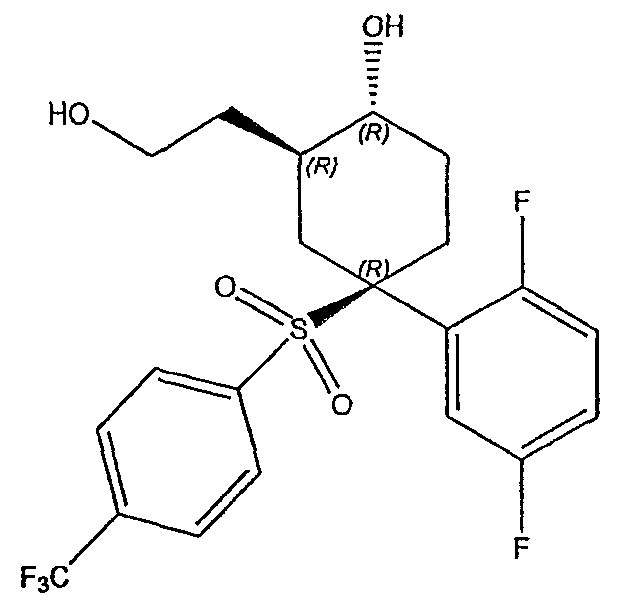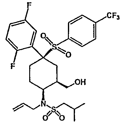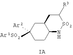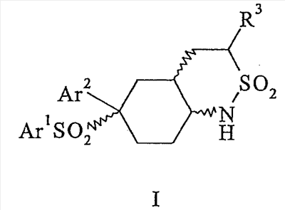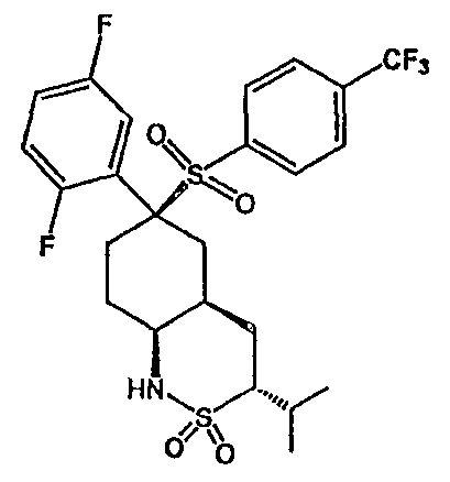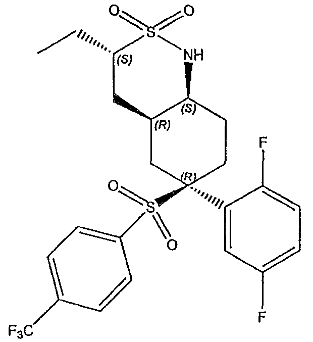 Настоящее изобретение относится к новому классу соединений, их солям, фармацевтическим композициям, включающим их, способам для их изготовления и их применению при лечении организма человека. В частности, изобретение относится к новым циклогексилсульфонам, включающим дополнительную конденсированную кольцевую циклическую сульфонамидную группу. Соединения ингибируют процессинг АРР Болезнь Альцгеймера (AD) представляет собой наиболее распространенную форму деменции. Хотя AD в первую очередь является заболеванием лиц пожилого возраста, поражающим до 10% населения в возрасте старше 65 лет, она также поражает значительные количества более молодых пациентов с генетической предрасположенностью. Она представляет собой нейродегенеративное расстройство, клинически характеризуемое прогрессирующей потерей памяти и познавательной функции, и патоморфологически характеризуется отложением внеклеточных белковых бляшек в корковых и ассоциативных областях мозга лиц, страдающих этим заболеванием. Эти бляшки главным образом включают фибриллярные агрегаты Имеется все большее количество сообщений в литературе о соединениях с ингибиторной активностью в отношении В документе WO 00/50391 раскрыт широкий класс сульфонамидов в качестве модуляторов продуцирования Настоящее изобретение предоставляет новый класс циклогексилсульфонов, включающих дополнительное конденсированное кольцо, которое содержит сульфонамидную группу. Соединения ингибируют процессинг АРР предполагаемой В соответствии с изобретением предоставляется соединение формулы I: где связи, указанные волнистыми линиями, представляют собой взаимно цис- в отношении циклогексанового кольца; R3 представляет Н или углеводородную группу, имеющую до 10 атомов углерода, необязательно замещенную CF3, CHF2, галогеном, CN, OR5, COR5, CO2R5, OCOR6, N(R5)2, CON(R5)2, или NR5COR6; R5 представляет Н или С1-4алкил; R6 представляет С1-4алкил; и Ar1 и Ar2 независимо представляют фенил или гетероарил, любой из которых несет 0-3 заместителя, независимо выбранных из галогена, CN, NO2, CF3, CHF2, OH, OCF3, CHO, CH=NOH, С1-4алкокси, С1-4алкоксикарбонила, С2-6ацила, С2-6алкенила и С1-4алкила, который необязательно несет заместитель, выбранный из галогена, CN, NO2, CF3, OH и С1-4алкокси; или его фармацевтически приемлемую соль. В формуле I и других формулах, представленных в настоящем описании, используется условное обозначение, посредством которого показывают, что волнистые линии обозначают связи, которые представляют собой взаимно цис- в отношении циклогексанового кольца. Все такие связи или выступают кверху от кольца, или выступают книзу от кольца. Сигма связи, присоединенные к циклогексановому кольцу и представленные сплошной линией, обязательно имеют ориентацию, противоположную ориентации связей, представленных волнистыми линиями. Соединения формулы I существуют в двух энантиомерных формах, в зависимости от того, выступают ли связи, указанные волнистыми линиями, кверху или книзу, соответствующие формулам IA и IB: где R3, Ar1 и Ar2 имеют такие же значения, как указано выше. Следует понимать, что любое соединение в соответствии с изобретением может существовать или в гомохиральных формах IA и IB, или в виде смеси обоих в любой пропорции. В дополнение к описанному выше изомеризму, соединения в соответствии с изобретением могут включать один или более асимметричных 
