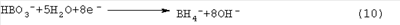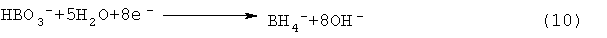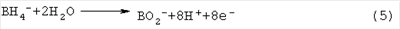 Одним из таких соединений является NaBH4. В воде NaBH4 диссоциирует на Na+ и BH4 –. В нейтральном растворе ВН4 – окисляется на аноде по уравнению (5)