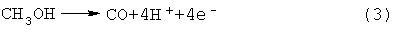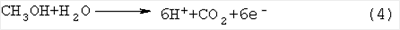 В топливных элементах с прямым питанием метанолом метанол каталитически окисляется на аноде с образованием электронов, протонов и оксида углерода, как показано в уравнении (3)