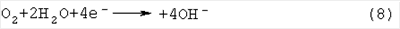 Соответствующее восстановление газообразного кислорода на катоде происходит по уравнению (8)