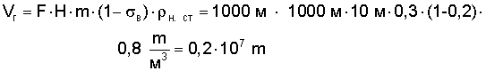 Исходные данные: этаж газоносности hг=100 м; толщина нефтяной оторочки hн=10 м; коллектор – терригенный с проницаемостью К=1 мкм2 и открытой пористостью m=30%; залежь – нефтегазовая с площадью нефтеносности F=1000 м × 1000 м; начальная водонасыщенность в=20%; плотность нефти в стандартных условиях н. ст=0,8 г/см3; пластовое давление Рпл=200 атм, коэффициент вытеснения нефти Квыт.=0,8. Геологические запасы рассчитывают по следующей формуле: