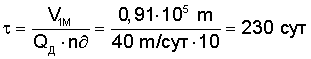 Тогда время работы добывающих скважин для образования такого остаточного слоя с учетом того, что общее количество добывающих скважин nд=10 составит: