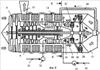 На фиг.3 приведена схема двигателя Стирлинга 10, который содержит рабочие цилиндры 27, расширительные цилиндры 28 и соединяющие их внутренние полости «Е» и «Ж», трубопроводы перепуска 29. Каждый рабочий цилиндр 27 имеет оребрение 35, рабочий поршень 36, установленный внутри, шатун 37. Каждый раширительный цилиндр 28 имеет установленный внутри вытеснительный поршень 38 и шатун 39, соединенный с валом двигателя Стирлинга 13. Расширительные цилиндры также могут содержать эффективное оребрение.