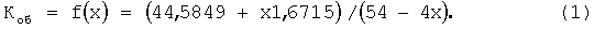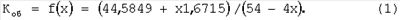 Подобным образом по фиг.5…8 для z=168: Kоб=0,82184+x0,06712, R2 д=(678+6х+141х2)/56, xопт=0,37, Коб=0,8467, д%мин=2,98; при х=0- д%=5,93 и Кэф=2,05.