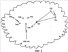 Вновь согласно фиг.6, последовательность ломаных линий между двумя терминалами представляет известное расстояние между двумя терминалами. Расстояние на карте может быть получено из измерений потерь в тракте, сделанных в главном терминале, а также передано ему обратно терминалами-членами. Однако, как будет пояснено более подробно, вкратце это измеренные потери в тракте и не то расстояние, которое используется для принятия решений относительно одновременных передач. Следовательно, если главный терминал имеет информацию потерь в тракте для каждой возможной комбинации пар терминалов в пикосети, то планирование одновременных передач может быть осуществлено без необходимости наличия информации относительно угловых координат каждого терминала-члена относительно главного терминала. Однако, на практике, карта топологии пикосети с угловыми координатами может оказаться весьма полезной при планировании одновременных передач.