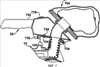 Кронштейн 100 для крепления ручки с возможностью поворота прикрепляется к кожуху 30 с помощью двух штырей 102. Кронштейн 100 имеет плоскую верхнюю поверхность 104 с выпускным отверстием 105. Отверстие 105 соединяется с выпускным отверстием 84 вентилятора с помощью гибкой трубки 106. Электронный позиционный датчик 120, в данном случае кнопочный переключатель, регистрирует, находится ли кронштейн 100 и таким образом узел 20 вертикальной ручки в вертикальном или наклонном положении. Многоконтактный электрический вывод 124 корпуса расположен на верхней поверхности 104 кронштейна.