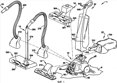 Пылесос содержит корпус и различные чистящие приспособления и ручки, которые прикрепляются с возможностью съема к корпусу (ЕР 1595488, A47L 11/40, 16.11.2005). Чистящие приспособления содержат всасывающую насадку для чистки ковра с помощью всасывания, насадку для чистки моющим средством для чистки ковра моющим средством и вспомогательный рукав для чистки бытовых поверхностей, расположенных над полом. Ручки включают вертикальную ручку для перемещения корпуса над ковром и переносную ручку для поднятия корпуса для достижения поверхностей, расположенных над полом.