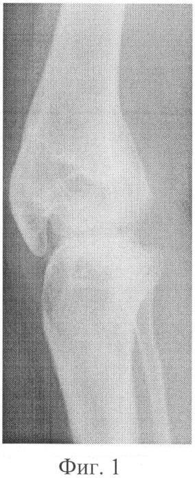 фиг.1 – рентгенограмма коленного сустава больной до лечения;