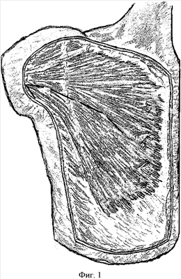 – отсекают абдоминальную часть большой грудной мышцы от места прикрепления к плечевой кости, расслаивают ее по ходу мышечных волокон (Фиг.1);