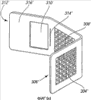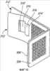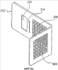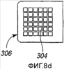 При ссылке на фигуры 8а и 8е в них проиллюстрирована заготовка 302 удерживающего элемента в одном воплощении настоящего изобретения. Заготовка 302 включает в себя первое размещение отверстий 4, расположенных в форме решетки, прилегающих к торцу 306, и второе размещение отверстий 308, расположенных в форме решетки. Вокруг каждого из размещений отверстий обеспечена граница. Отверстия разнесены на расстояние друг от друга от отверстий 304, и отверстие 310 предоставлено в области торца 312. Заготовке можно придать требуемую форму любым традиционным способом, таким как сгибание и/или тому подобное. Отверстия типично вырезают посредством резки азотным лазером, однако могут быть также применены другие традиционные способы.