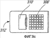 Фигуры 9а-9е иллюстрируют различные примеры дополнительного удерживающего элемента 302′, образованного в соответствии с различным расположением по отношению к элементу, проиллюстрированному на фигурах 8а-8е. В этом расположении торец 312′ изогнут по отношению к поверхности удерживающего элемента 302′, на котором представлены отверстия 308′ в дополнение к изгибу торца 306′ для образования манипуляционной части. В заключительной компоновке торец 312′ обращен вовнутрь элемента к концу 306′. Ось поворота или ось шарнира 314′ предоставлена в виде мостика или выступающей части для того, чтобы обеспечить возможность вращения элемента 312′ по отношению к элементу 302.
