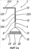 Индикатор 34 предоставлен в центральной части листового материала таким образом, что образуется граница по периферии устройства 6. Данная граница соответствует наружному краю удерживающих частей 18, 20, которые не снабжены отверстиями 28, 30.