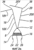 Пружина 22, которая отклоняет манипуляционные части к закрытому положению, как показано на фигуре 1b, прикреплена к противостоящим поверхностям 24, 26 манипуляционных частей 14, 16. В этом положении манипуляционные части разнесены на расстояние друг от друга, и удерживающие части 18, 20 примыкают и параллельны друг другу.