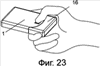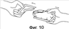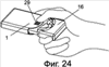 Процесс распаковки презерватива показан на фиг.23 и 24. При распаковке презерватива крышку 16 коробки удерживают в одной руке, а другой рукой воздействуют на коробку 1, смещая ее по отношению к крышке 16 в плоскости презерватива. В результате того, что держатель прикреплен к крышке 16, а пакет 9 – к коробке 1, происходит разрыв пакета 9. После удаления коробки 1 держатель 7 с удерживаемым презервативом освобождается из пакета 9.
