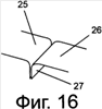 Как показано на фиг.16 и 17, оболочка может содержать лист, края 25 и 26 которого соединены между собой при помощи легкого адгезива на участке 27. Края 25 и 26 могут быть отогнуты в одну сторону, как показано на фиг.16, или расположены внахлест, как показано на фиг.17. При этом прочность участка 27 меньше, чем прочность самого листа. Благодаря этому при распаковке презерватива пакет 9 может быть легко разорван на участках, подобных участку 27, представленному на фиг.16-17.
