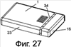 Как показано на фиг.27-28, блокиратор может быть выполнен в виде тонкой ленты 34 (например, из гибкого полимерного материала), проходящей вдоль линии 35 соединения коробки 1 и крышки 16 и прикрепленной к коробке 1 и крышке 16.