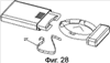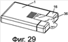 Как показано на фиг.25-26, блокиратор может быть реализован путем выполнения в зоне участка 29 на открытых торцах коробки 1 и крышки 16 соответственно выступа 32 и канавки 31, которые при соединении коробки 1 и крышки 16 приходят в механическое зацепление и, следовательно, препятствуют распаковке.
