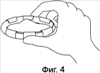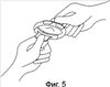 При этом под удобством распаковки понимается возможность ее осуществления одной рукой, в то время другая рука используется лишь кратковременно, например в ситуации, представленной на фиг.3, когда одна рука пользователя подложена по голову женщины. Далее, в процессе надевания презерватива с помощью держателя, вторая рука уже не используется.