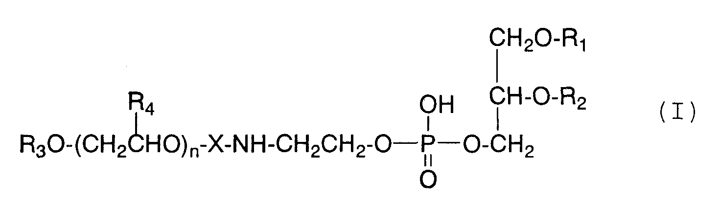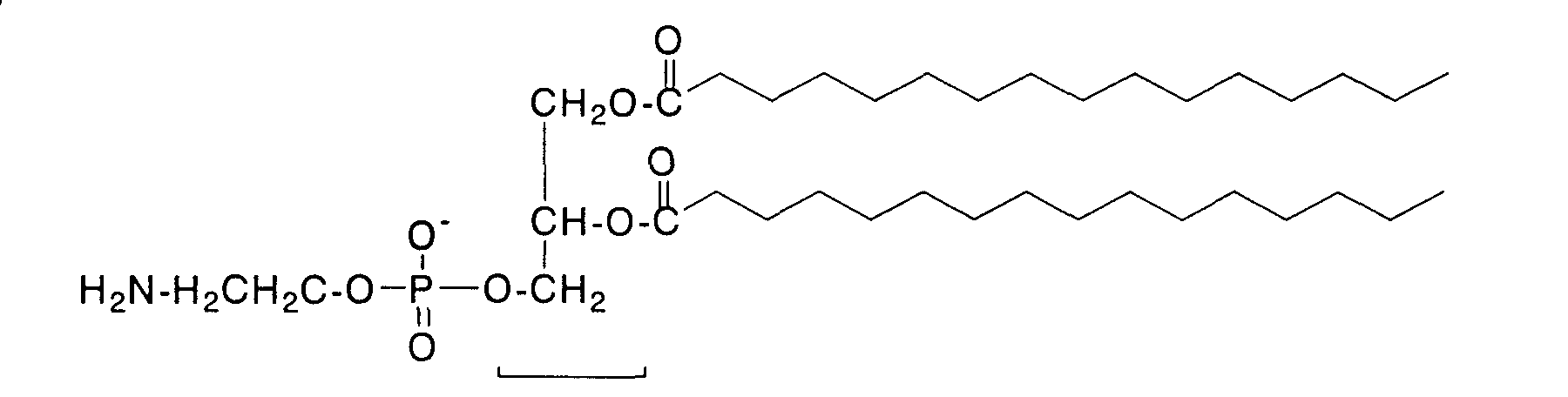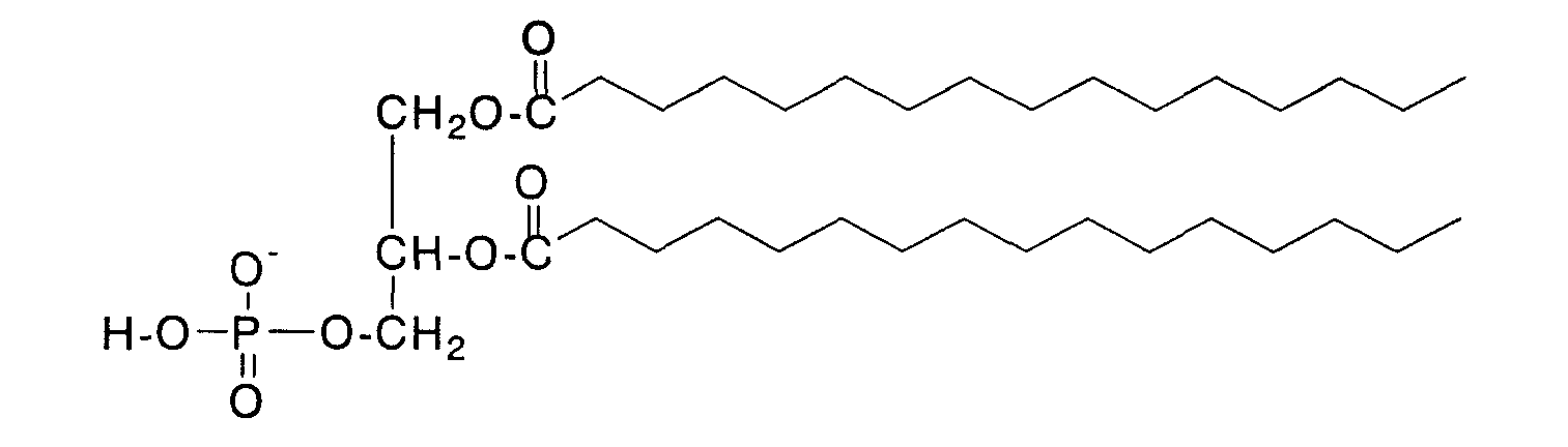 (4) Рассмотрение результатов Как можно видеть из результатов в Таблицах 4 и 5, образцы жировых эмульсий изобретения (примеры 11-20) не разделяются на две фазы через 24 часа после смешения с гидрохлоридом лидокаина, хотя даже величину рН изменяли почти таким же образом, как в сравнительном образце сравнительного примера 2. Поэтому становится ясно, что образцы жировых эмульсий изобретения имеют превосходную эмульсионную стабильность. Образцы жировых эмульсий изобретения примеров 1-10 проверяли в условиях, когда гидрохлорид лидокаина не добавляли, на стабильность после 6 месяцев хранения при 40°С, что показало, что их внешний вид не изменялся, и стабильность при хранении была превосходной. Это подтверждало, что данная стабильность при хранении является значительной, особенно в образцах жировых эмульсий изобретения примеров 3-7. Образцы смягчающей или снимающей боль жировой эмульсии изобретения (примеры 11-20), испытанные выше, были все способны предотвращать или снимать боль (сосудистую боль), возникающую как побочный эффект во время их внутривенного введения. Примеры 21-24 Получение образца смягчающей или снимающей боль жировой эмульсии изобретения Смягчающие или снимающие боль жировые эмульсии изобретения, включающие компоненты, представленные в Таблице 6, получали следующим образом. Смешивали компоненты, представленные в Таблице 6, пропофол, гидорохлорид лидокаина и соевое масло или триглицерид средней длины цепи. К данной смеси добавляли эмульгатор и стабилизатор и далее добавляли раствор, в котором глицерин был растворен в воде для инъекции таким образом, чтобы получить конечную концентрацию 2,21%, полученную в результате смесь нагревали и грубо эмульгировали в атмосфере азота при скорости вращения 25000 об./мин в течение 10 минут с использованием гомогенизатора PolytronTM (производимого фирмой KINEMATICA). Последовательно, величину рН полученной грубо эмульгированной жидкости доводили до 8,2-8,3 и затем смесь подвергали обработке в гомогенизаторе высокого давления (производимом APV) в атмосфере азота, при температуре эмульгирования от 40°С до 80° при давлении эмульгирования 550 кг/см2 до тех пор, пока средний диаметр ее частиц не достигал 0,3 мкм или менее, получая обработанную эмульсию. 10 мл полученной эмульсии помещали в 10-мл стеклянную емкость и подвергали стерилизации паром при высоком давлении (121°С, 12 минут) с использованием герметизированного автоклава, получая образец смягчающей или снимающей боль жировой эмульсии изобретения. Сравнительный Пример 3 Получение сравнительной смягчающей или снимающей боль жировой эмульсии Для получения образца сравнительной жировой эмульсии, включающей компоненты Таблицы 6, повторяли методику примера 21, за исключением того, что DSPG (дистеароилфосфатидилглицерин) в качестве стабилизатора не использовали.