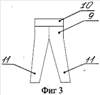 На фиг.3 представлено устройство в виде брюк 9, состоящее из пояса 10 и двух штанин 11.