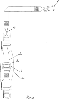 на фиг.1 изображена страховочная привязь, общий вид,