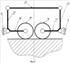 Однако осуществить абсолютное выполнение указанного требования практически невозможно, и как следствие того, что мгновенный центр поворота движущейся тележки и центр вращения моста не совпадают, тележка стремится отклониться от идеальной траектории движения. В результате конструкция ходовой части илоскреба начинает упруго деформироваться, и, когда момент упругих сил сравняется с моментом сил бокового скольжения колес, тележка рывком возвращается на траекторию, определяемую положением кольцевой опоры моста. При этом, чем больше база тележки, т.е. расстояние между центрами ходовых колес, тем большее усилие требуется для корректировки курса тележки, и, следовательно, большее напряжение испытывает конструкция. Известно, что при балансирной подвеске колес невозможно сделать базу намного меньше, чем два диаметра ходового колеса, и это обстоятельство становится препятствием для использования двухколесных балансирных тележек в тяжелых илоскребах.