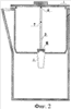 В варианте компоновки средства индикации, которое представлено на фиг.2, устройство для очистки работает так же, как описано выше, но мерная емкость закреплена на крышке картриджа таким образом, что устройство крепления не препятствует фильтрации воды через картридж. Верхняя часть индикатора расположена выше верхнего края контейнера, что позволяет избежать попадания воды в отверстие для выхода воздуха. Отверстие для очищаемой воды в этом случае расположено в средней части индикатора. Такой прием позволяет уменьшить объем воды, отбираемой за один цикл работы фильтра, и пропорционально уменьшить объем индикатора.