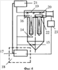 Работа системы порошкового пожаротушения (на чертеже не показано) происходит в дублирующем варианте, в случае, если на первой ступени выйдет из строя, например, электромагнитный клапан подачи воды или будет отключена система водоснабжения, тогда сработает система порошкового пожаротушения, причем управление работой этих систем осуществляется от микропроцессора 17, который может быть размещен стационарно (например, в шкафу 18 управления) или быть встроенным в выносной пульт (на чертеже не показано), чтобы можно было в случае аварии управлять процессом пожаротушения, останавливая при этом распространение огня, что в целом повысит безопасность всей системы очистки воздуха от пыли.