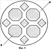 на фиг.5 приведен вид сверху на газопроницаемую мембрану с несколькими квадратными ячейками;