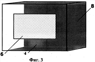 на фиг.3 схематически изображена в аксонометрии заявляемая газопроницаемая мембрана с одной ячейкой;