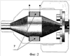 Предлагаемое устройство для разбрызгивания, как показано на фиг.1, содержит корпус 1 с рабочей камерой 2, соплом 3 и расположенную между ними кольцевую камеру 4. С кольцевой камерой 4 сообщаются резонаторы 5. Внутри рабочей камеры 2 установлен импульсный генератор давления, выполненный с электродами 6, с показанным на фиг.2 пьезоэлементом 7 или с показанным на фиг.3 электродинамическим элементом 8.