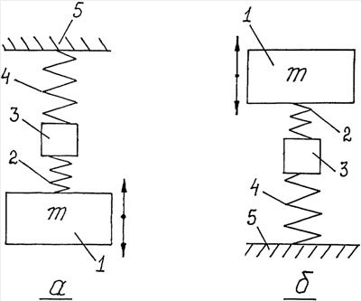 Удержание инерционного вибратора 3 в пространстве виброизолирующей упругой связью с основанием 5 и его воздействие на упругую связь (соединенную противоположным концом с массой 1) создает эффект динамической псевдоопоры. Иначе говоря, инерционный вибратор будет выполнять функции не только устройства, сообщающего прикрепленному к нему концу упругой связи принудительное периодическое перемещение, но и функцию подвижной “опоры”, относительно которой масса 1 будет совершать вынужденные (а в области периода То – резонансные) колебания.