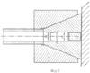 Указанная техническая задача решается также устройством для ударного прессования, содержащим пуансон, разборную матрицу с наружной конической поверхностью, заключенную в сопрягающуюся с ней по конической поверхности обойму.
