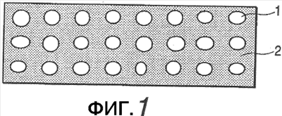 Фиг.1 показывает оттиск настоящего изобретения при рассмотрении по печатной поверхности. На фигуре участок 1 соответствует части слоя типографской краски, сформированного посредством первой типографской краски. Участок 2 соответствует части слоя типографской краски, сформированного посредством второй типографской краски. Часть 1 первого слоя типографской краски экспонирована точечным образом по второму слою 2 типографской краски. Точечное экспонирование определяет относительное взаимное расположение между слоем флуоресцентной типографской краски или флуоресцентной частицей в нем и слоем типографской краски, который должен быть наслоен, или цветным красителем в нем. Даже если слой типографской краски наслоен, флуоресцентное излучение может наблюдаться в виде точечного излучающего участка на протяжении оценки согласно увеличению посредством линзы или тому подобного. В то же время флуоресцентное излучение может наблюдаться в виде излучающего участка в форме линии или форме плоскости.
