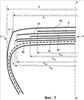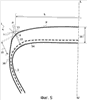 На фиг.5 представлен схематический вид в продольном разрезе пневматической шины 1, на котором показана первая касательная 7 к поверхности наружного в осевом направлении конца беговой дорожки протектора 8. При этом поверхность беговой дорожки протектора определяется наружной в радиальном направлении поверхностью или вершиной рельефного рисунка протектора, не показанного на приведенных в приложении фигурах. Вторая касательная 9 к поверхности наружного в радиальном направлении конца боковины 10 пересекает упомянутую первую касательную 7 в точке 11. Ортогональная проекция этой точки на наружную поверхность пневматической шины определяет конец плечевой зоны 6 пневматической шины.