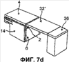 Вспомогательное приспособление 36 содержит верхнюю часть, которая располагается по существу на той же высоте, что и спинка 4 в том случае, когда она находится в горизонтальном положении. При этом для формирования спального места, когда спинка 4 уложена в горизонтальное положение, предусмотрено использование дополнительного элемента спального места 32 , подобного дополнительному элементу спального места 32, показанному на предшествующих фигурах. Однако в данном случае, принимая во внимание наличие вспомогательного приспособления 36 и его верхней части, этот дополнительный элемент спального места 32 имеет уменьшенные размеры по сравнению с дополнительным элементом спального места 32, описанным выше. Дополнительный элемент спального места 32 уменьшенного размера также размещается вертикально между креслом и вспомогательным приспособлением 36 и переводится из своего положения вертикального размещения в свое “активное” горизонтальное положение при помощи поступательного движения и поворота, как это проиллюстрировано двумя черными стрелками, показанными на фиг.7b. В данном случае для поворота этого элемента может быть предусмотрена некоторая ось. Можно также предусмотреть две канавки, одну со стороны опорного каркаса 14 кресла, а другую со стороны приспособления 36, для размещения дополнительного элемента спального места 32 . В своем горизонтальном положении дополнительный элемент спального места 32 опирается, таким образом, на сиденье 2 и на упомянутое вспомогательное приспособление 36 и образует, вместе с откинутой спинкой 4 и верхней частью вспомогательного приспособления 36, по существу плоское спальное место.