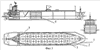 Трубопровод 15 служит для перекачки газа во время погрузочно-разгрузочных работ. Вертлюг высокого давления 16 обеспечивает стыковку с рейзером внешних загрузочно-разгрузочных устройств. Элементы трубопровода 15, расположенные внутри танка 5, размещены внутри массы газопенобетона, как и баллоны 14, что позволяет уменьшить влияние судовой вибрации на элементы трубопровода.
