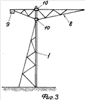 На фиг.3, 4 изображена в виде сбоку и спереди система по варианту 4. На конце каждой стойки 1 имеется рычаг 8 с противовесом 9. Рычаг может поворачиваться на шарнирах 10 вокруг вертикальной оси /механизм не показан/.