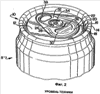 На фиг.7 и 8 показан альтернативный вариант торцовой крышки 10. В этом варианте радиус кривизны Rq1 в первой четверти 42 составляет приблизительно от двух третьих до одной половины от радиуса кривизны Rq2 во второй четверти 44 или лежит в любом диапазоне между указанными пределами. Далее, радиус кривизны Rq3 в третьей четверти составляет приблизительно от трех четвертых до семи восьмых от радиуса кривизны Rq2 или лежит в любом диапазоне между указанными пределами, а радиус кривизны Rq4 составляет приблизительно от одной второй до двух третьих от радиуса кривизны Rq2 или лежит в любом диапазоне между указанными пределами. Радиус кривизны Rqт в переходной зоне 22d составляет приблизительно от одной целой и трех четвертей до двух радиусов кривизны Rq2 или лежит в любом диапазоне между указанными пределами. Более предпочтительно, Rq1 составляет от 0,18 до 0,242 дюйма или лежит в любом диапазоне между указанными пределами, Rq2 составляет от 0,378 до 0,432 дюйма или лежит в любом диапазоне между указанными пределами, Rq3 составляет от 0,313 до 0,367 дюйма или лежит в любом диапазоне между указанными пределами, Rq4 составляет от 0,248 до 0,302 дюйма или лежит в любом диапазоне между указанными пределами, Rqт составляет от 0,628 до 0,682 дюйма или лежит в любом диапазоне между указанными пределами.