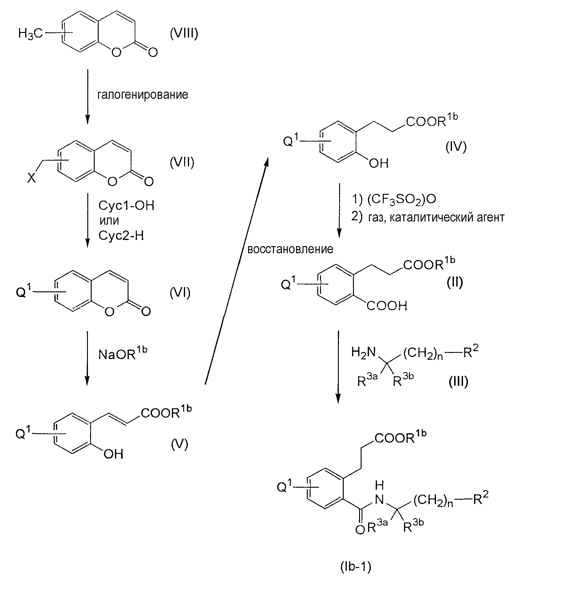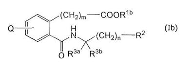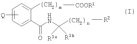1. Соединение карбоновой кислоты формулы (I) где R1 означает водород или С1-4 алкил; R2 означает фенил, нафтил, бензофуранил или бензтионил, который является незамещенным или замещенным 1-2 С1-4 алкилом и/или галогеном; Q означает (i) -СН2-O-Сус1, (ii) -СН2-Сус2 или (iii) -L-Сус3, Cyc1 означает фенил или пиридил, который является незамещенным или замещенным 1-2 R4; Сус2 означает индолил, который является незамещенным или замещенным 1-2 R4; Сус3 означает фенил, замещенный 1-2 R4; L означает -О- или -NH-; каждый из радикалов R3a и R3b независимо означает водород или С1-4 алкил или радикалы R3a и R3b, взятые вместе с атомом углерода, к которому они присоединены, образуют тетрагидро-2Н-пиран; m равно 2 или 3; n равно 0, 1 или 2; R4 означает С1-4 алкил, С1-4 алкилтио, галоген или циано, или когда Сус3 означает фенил, замещенный двумя R4, два радикала R4, взятые вместе с фенилом, могут образовать