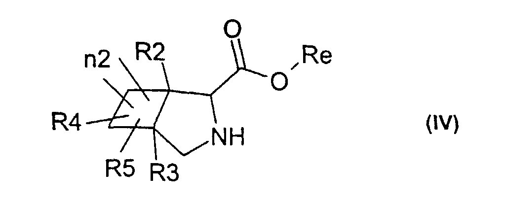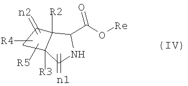 где Re означает атом водорода или защитную сложноэфирную группу, R2, R3, R4, R5, n1 и n2 являются такими, как указано в п.1,